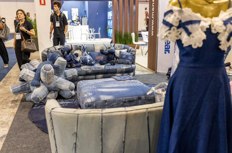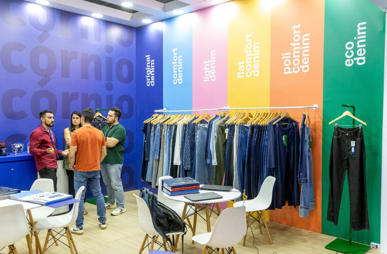Espaço para expositores apresentarem seus lançamentos e tendências de tecidos e estampas aos visitantes.